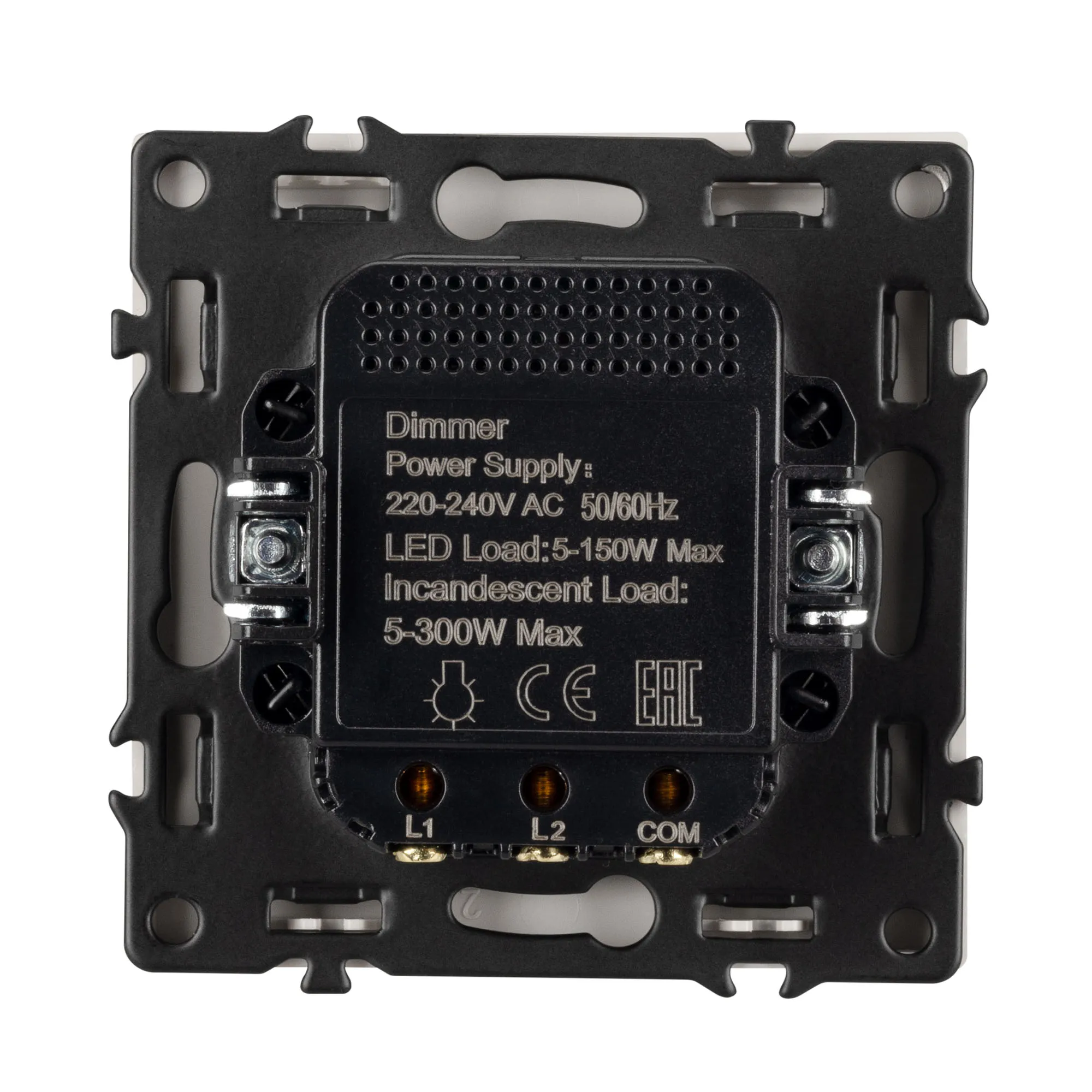 Настройка интенсивности освещения осуществляется за счет поворотной ручки (ротора). Она позволяет включать, выключать и регулировать свет и его яркость. Светорегулятор предназначен для управления светодиодными (до 150Вт) или другими источниками света (до 300Вт) с напряжением питания 230В.