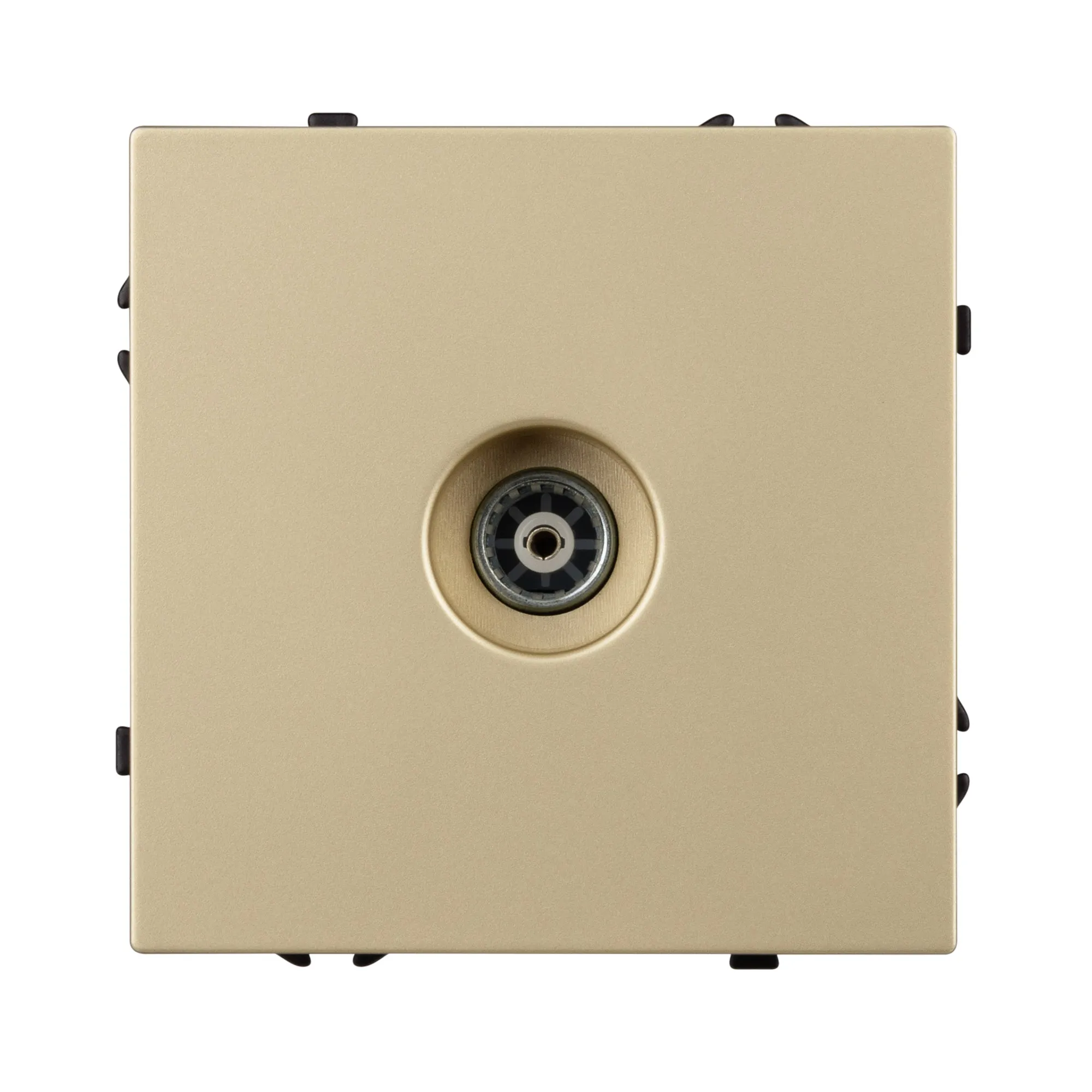 Механизм ТВ-розетки совместим с рамками серии NOBE, создает утонченный минималистичный вид. Скрытый тип монтажа позволяет гармонично встроить в интерьер любого современного дизайн-проекта. Видимая часть выполнена из высококачественного пластика цвета золотой песок и имеет Soft-Touch покрытие, что придает изделию приятные тактильные ощущения и стильный внешний вид.