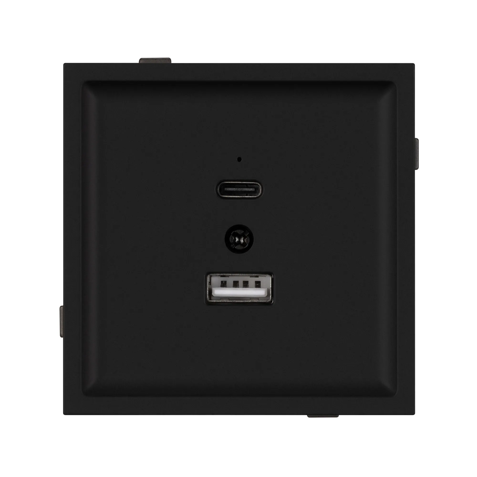 Механизм розетки с быстрой USB зарядкой, совместимый с рамками серии TENDO, создает утонченный минималистичный вид. Наличие USB Type A и Type C портов позволяет существенно сократить количество используемых розеточных постов, сохраняя единую стилистику интерьера современного дизайн-проекта. Оба разъема поддерживают протокол быстрой зарядки Quick Charge QC 3.0, помимо этого для разъема Type C доступен протокол Power Delivery*.