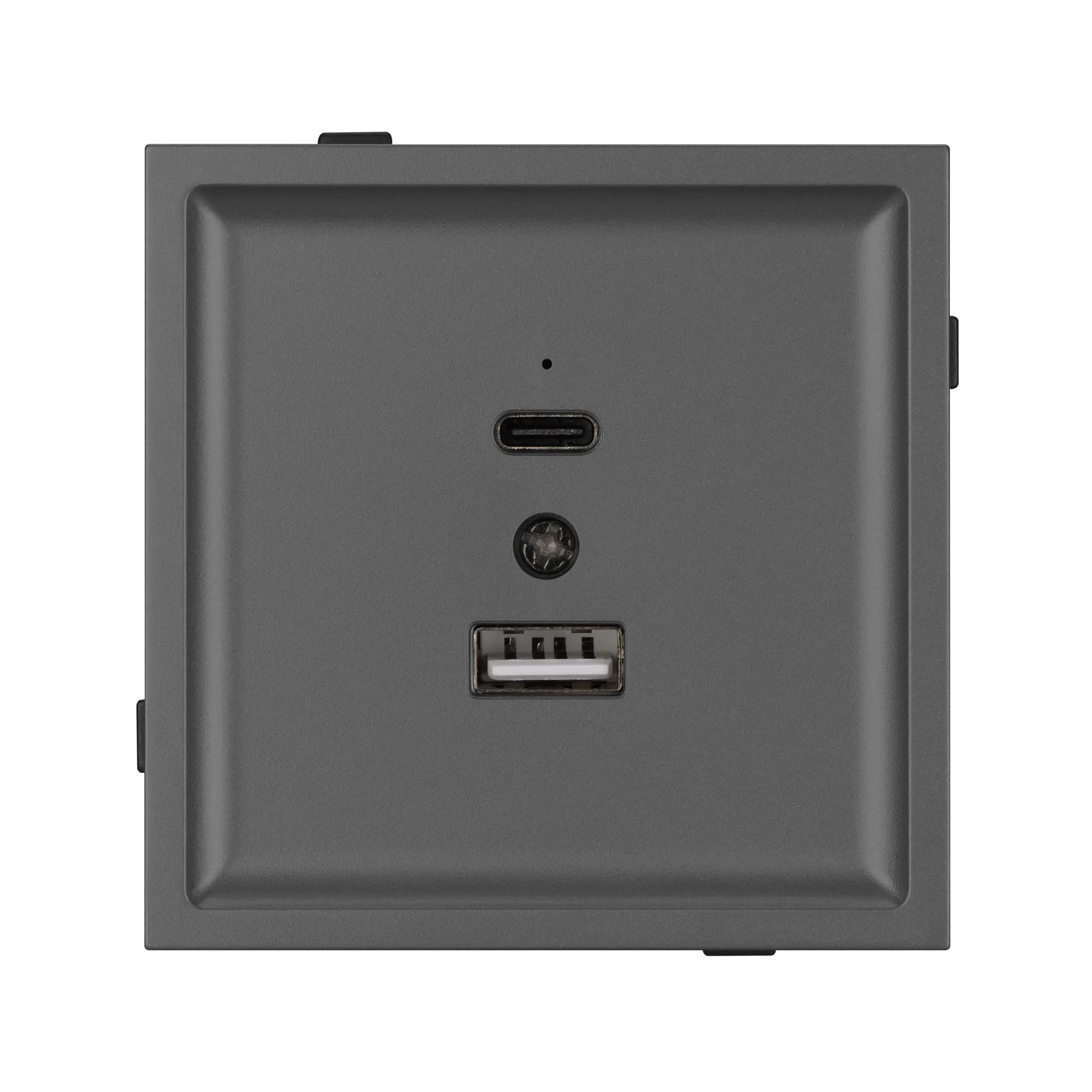 Механизм розетки с быстрой USB зарядкой, совместимый с рамками серии TENDO, создает утонченный минималистичный вид. Наличие USB Type A и Type C портов позволяет существенно сократить количество используемых розеточных постов, сохраняя единую стилистику интерьера современного дизайн-проекта. Оба разъема поддерживают протокол быстрой зарядки Quick Charge QC 3.0, помимо этого для разъема Type C доступен протокол Power Delivery*.