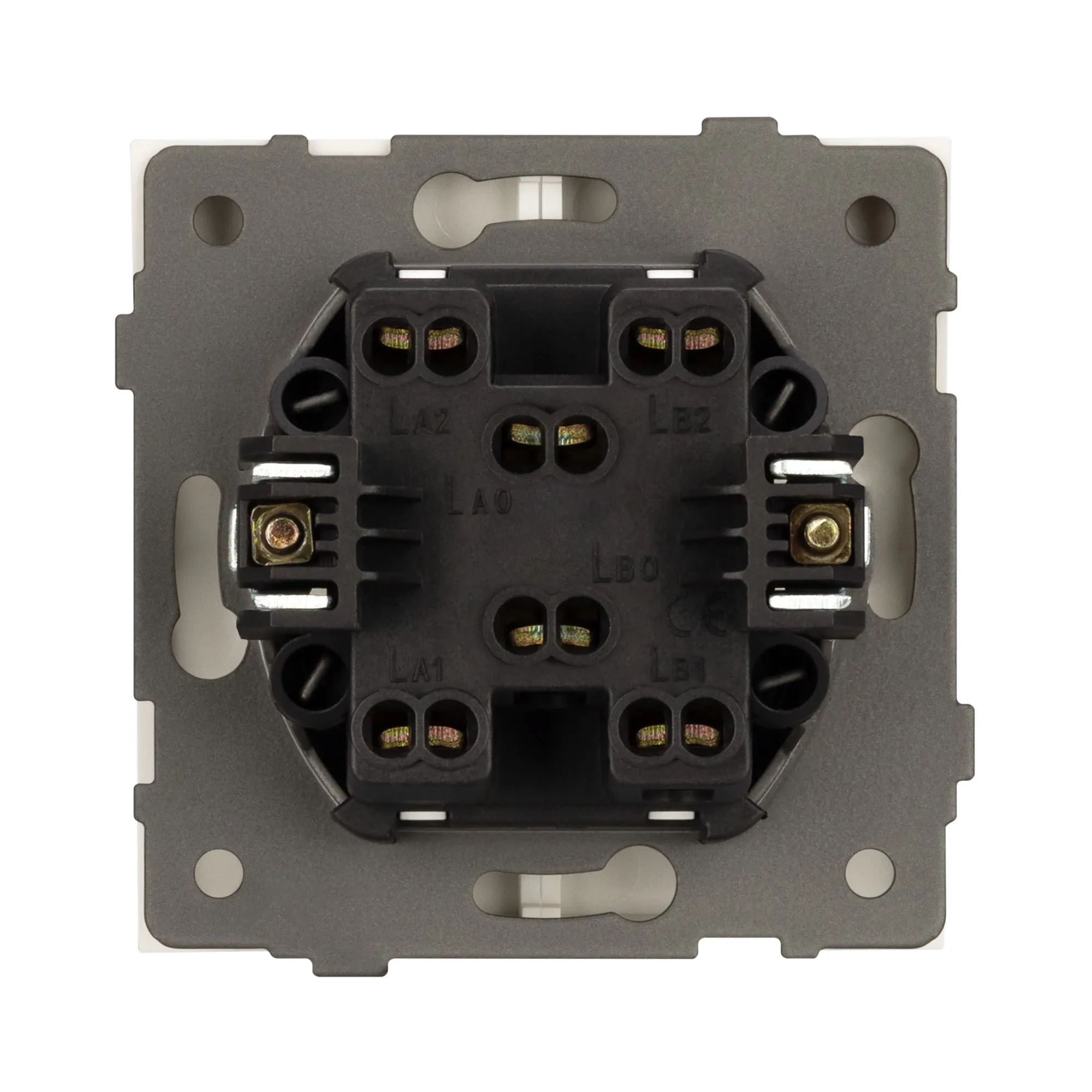 Контактная часть присоединяется при помощи винтовых зажимов, позволяя надежно подсоединить механизм выключателя к питающим элементам. А усиленные распорные лапки двойного захвата надежно фиксируют механизм в установочном подрозетнике круглого сечения диаметром 60мм.