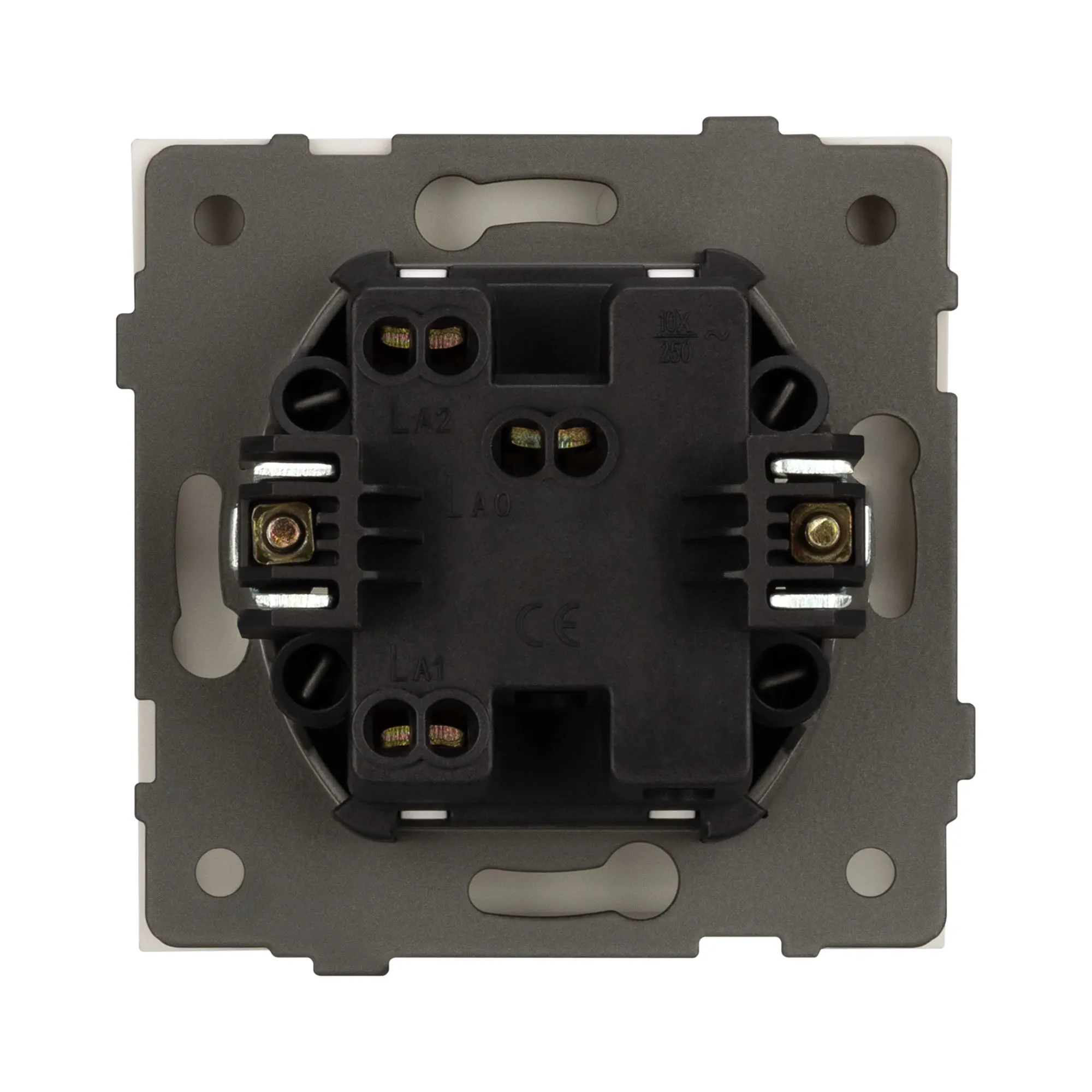 Контактная часть присоединяется при помощи винтовых зажимов, позволяя надежно подсоединить механизм выключателя к питающим элементам. А усиленные распорные лапки двойного захвата надежно фиксируют механизм в установочном подрозетнике круглого сечения диаметром 60мм.