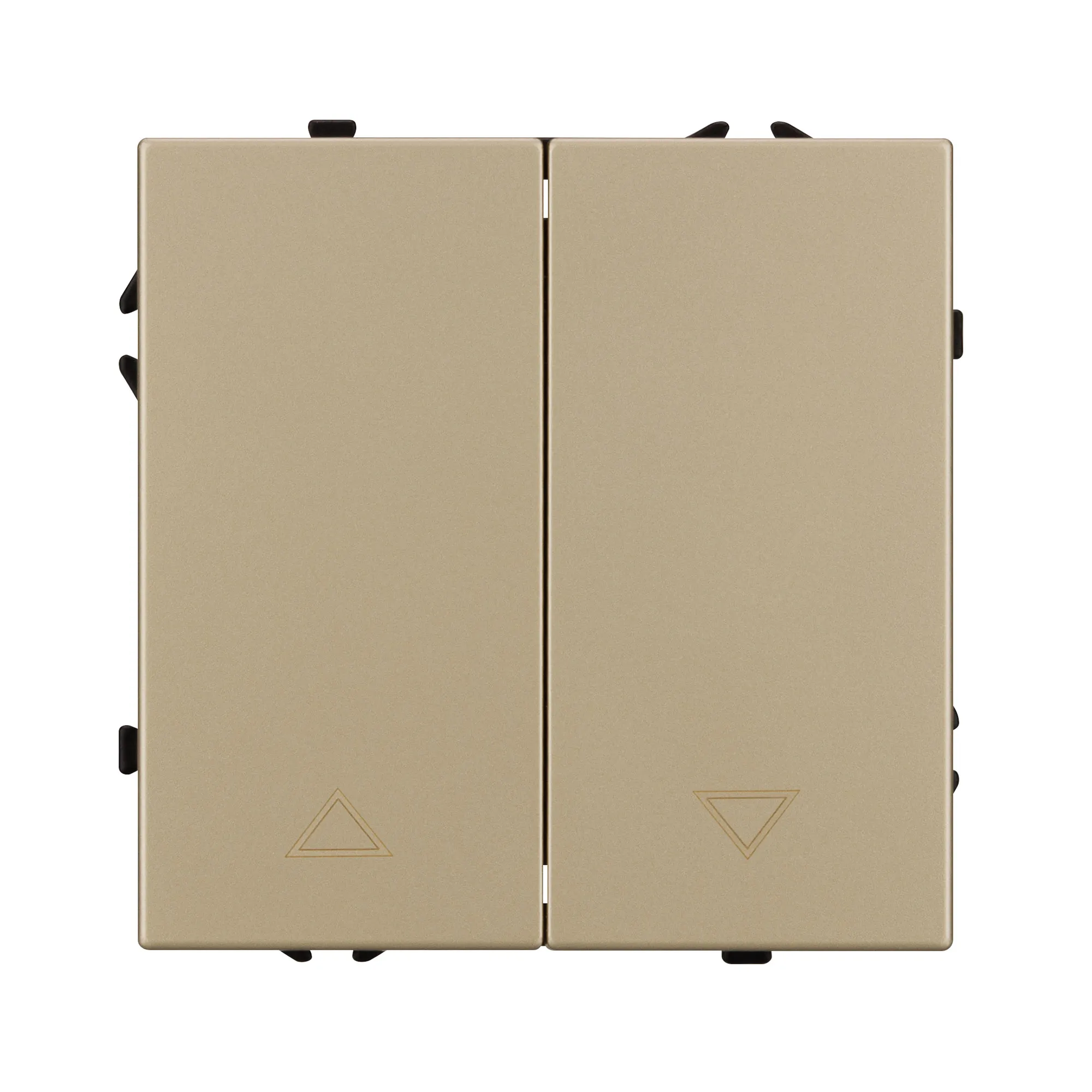 Механизм выключателя управления шторами совместим с рамками серии NOBE, создает утонченный минималистичный вид. Скрытый тип монтажа позволяет гармонично встроить в интерьер любого современного дизайн-проекта. Видимая часть механизма выполнена из высококачественного пластика цвета золотой песок и имеет Soft-Touch покрытие, что придает изделию приятные тактильные ощущения и стильный внешний вид.