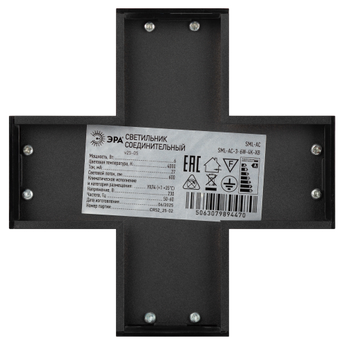 Соединительный элемент для магистральных светодиодных светильников ЭРА SML. Позволяет реализовать смелые дизайнерские задачи в рамках светового оформления. На потолке и стенах можно создавать креативный LED-рисунок - квадраты, буквы, пчелиные соты, кристаллические решетки и многое другое.