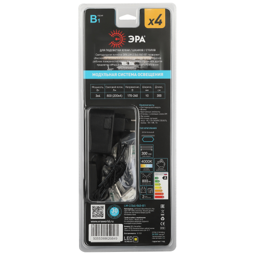 Модульная система, состоящая из 4-х светодиодных модулей. Мощность каждого модуля 3Вт. Цветовая температура 4000K. Комплектация: светильник, набор крепежных элементов, ссоед. кабель 3шт., источник питания 15Вт. Включение и выключение производится с помощью выключателя на проводе