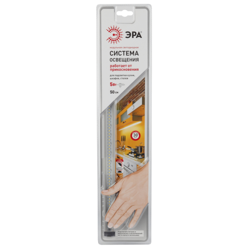 Светодиодный модуль с управлением от датчика прикосновения с возможностью шаговой регулировки яркости (6%, 50%, 100%). Мощность 5Вт. Срок службы 30000 часов. Напряжение питания 12В DC. Цветовая температура 4000K. Комплектация: светильник, источник питания, крепежные клипсы, двусторонний скотч