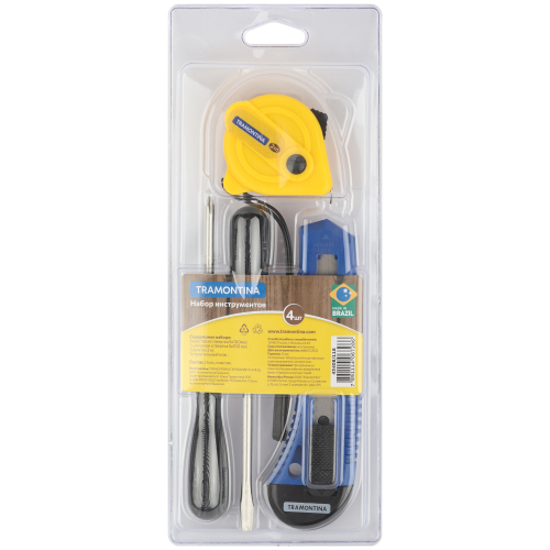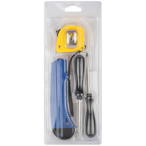 Состав набора: Шлицевая отвертка 3/16х3 , крестовая отверта 3/16х6 , измерительная рулетка 2м, строительный нож 6 15,2 см