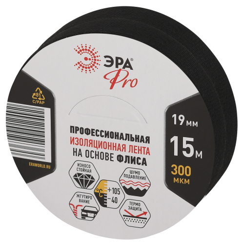 Набор изолент ЭРА SET2-PROFLEEC1915 флис 2 шт - профессиональная изолента на флисовой основе. Чаще всего применяется как автомобильная изолента. Обеспечивает защиту проводов от негативного воздействия экстремальных температур и механических повреждений. С помощью изоляционной ленты на флисе обматывают электрические провода для уменьшения шума, снижения вибрации, скрипа в салоне автомобиля. Новая изолента ЭРА Pro на основе флиса - идеальное решение для обмотки проводов в моторном отсеке, особенно в зонах повышенного трения.