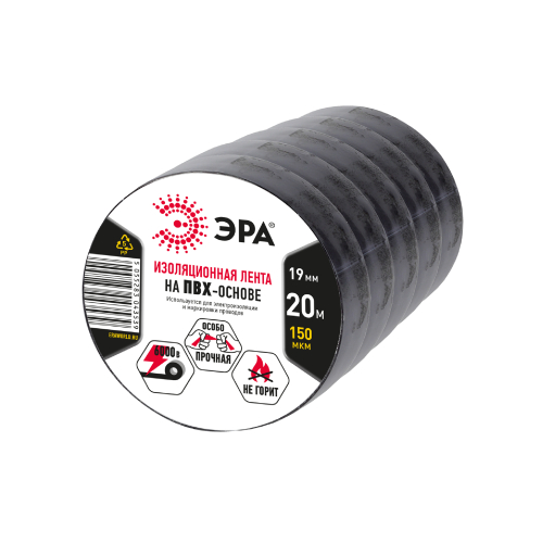 Набор из 5 шт. изолент 19мм х 20 м чёрная. Изолента ЭРА изготовлена из высококачественного негорючего ПВХ. Представляет собой расходный материал для проведения бытовых и строительных электромонтажных работ. Используется для электроизоляции, в целях маркировки, а также для защиты от механических повреждений, воздействия влаги и пр. Устойчива к воздействию УФ-лучей, влажности, истиранию, коррозии металлов, старению. Клеевой слой на резиновой основе. Изолента выпускается в рулонах по 20 м.