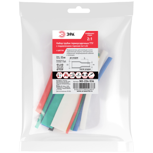 Общепромышленные термоусадочные трубки ТТУ нг-LS в розничных наборах представляют собой универсальное решение для изоляции и маркировки. Трубки изготавливаются методом экструзии из специального состава полиолефина с добавлением антипиренов, после чего нарезаются на отрезки по 10 см. Коэффициент термоусадки 2:1 обеспечивает надежную фиксацию и защиту, а широкая цветовая гамма и разнообразие диаметров позволяют подобрать оптимальный вариант для различных задач.