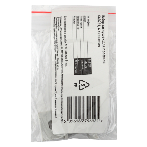 Набор заглушек для профиля CAB261, 4 сквозные. Изготовлены из негорючего пластика