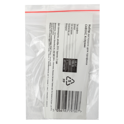 Набор заглушек для профиля CAB262, 4 глухие. Выполнены из негорючего пластика.