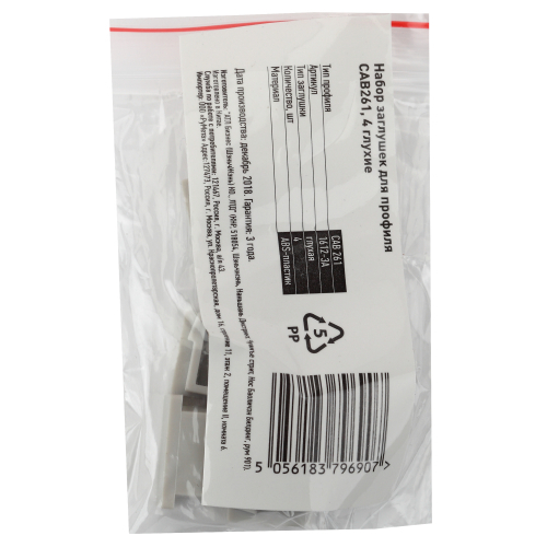 Набор заглушек для профиля CAB261, 4 глухие. Выполнены из стойкого негорючего пластика.
