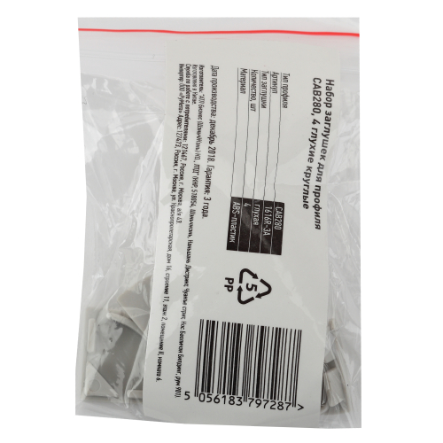 Набор заглушек для профиля CAB280, 4 глухие круглые. Выполнены из негорючего пластика.