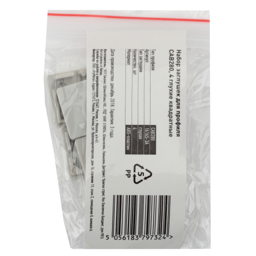 Набор заглушек для профиля CAB280, 4 глухие квадратные. Выполнены из негорючего пластика.