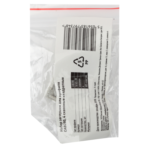 Набор заглушек для профиля CAB280, 4 сквозные квадратные. Выполнены из негорючего пластика.