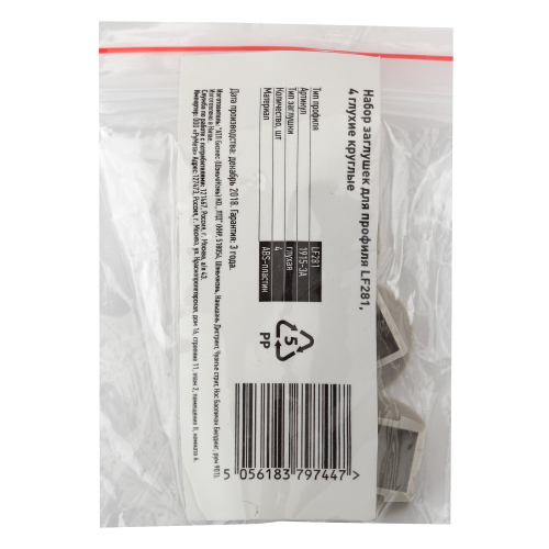 Набор заглушек для профиля LF281, 4 сквозные круглые из высококачественного негорючего пластика.
