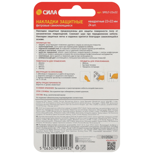 Накладки защитные предназначены для защиты поверхности пола от механических повреждений. Снижают шум при передвижении мебели. Накладки защитные легко и надежно крепятся благодаря самоклеящейся основе.