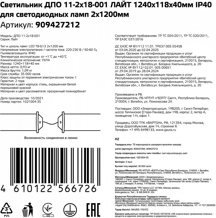 Объем упаковки, куб. м