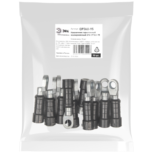 Изолированный наконечник ЭРА CPTAU-95 предназначен для оконцевания провода марки СИП-2 и СИП-4 при выполнении контактного присоединения к электроустановкам.