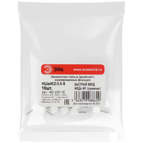 Наконечники-гильзы НШвИ(2) двойные состоят из медной луженой гильзы, один конец которой развальцован для облегчения ввода многожильного провода и изолирующей манжеты из полипропилена.