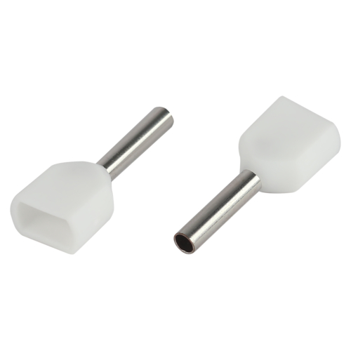 Предназначены для использования с двумя проводниками: для оконцевания гибких многопроволочных медных проводников методом опрессовки для последующей фиксации в клемме или нулевой шине. Заменяют обязательный процесс облуживания многопроволочных медных проводов (типа ПВ-3, ПВС и т. п.).