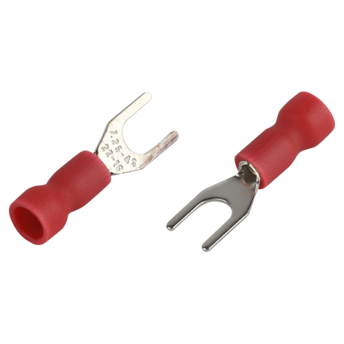 Наконечники изолированные вилочные НВИ: предназначены для оконцевания многожильных гибких медных проводников методом опрессовки при монтаже электрических соединений, где предусмотрено крепежное соединение на основе винтовой фиксации. Применение наконечников НВИ защищает проводники от механического повреждения крепежным винтом.