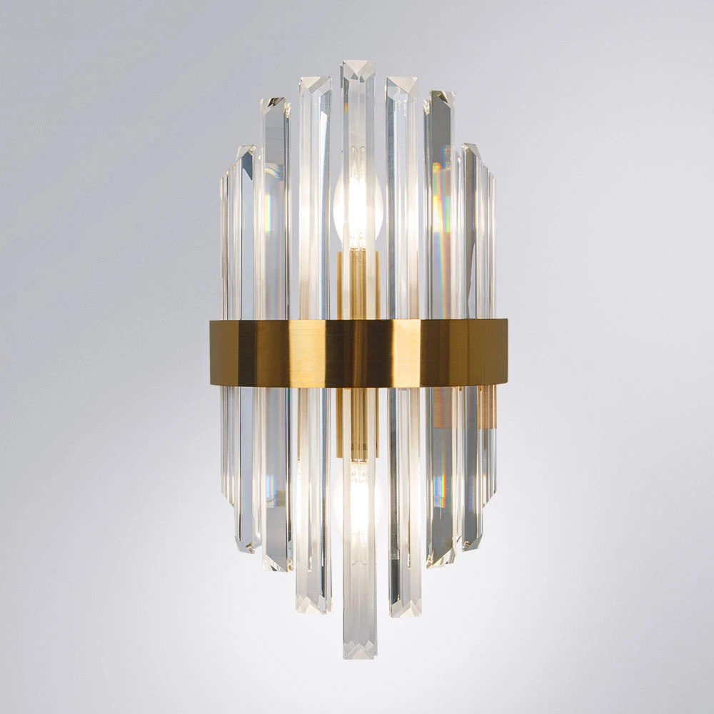 Настенный светильник Arte Lamp FEDELTA A1068AP-2PB в стиле неоклассика. Модель с двумя прозрачными хрустальными плафонами на изящной медной арматуре создает элегантную игру света. Плафоны направлены вверх и вниз, обеспечивая комфортное рассеянное освещение. Идеальное решение для создания атмосферы уюта в прихожей, гостиной или спальне. Для использования с лампами накаливания. Гарантия 36 месяцев.