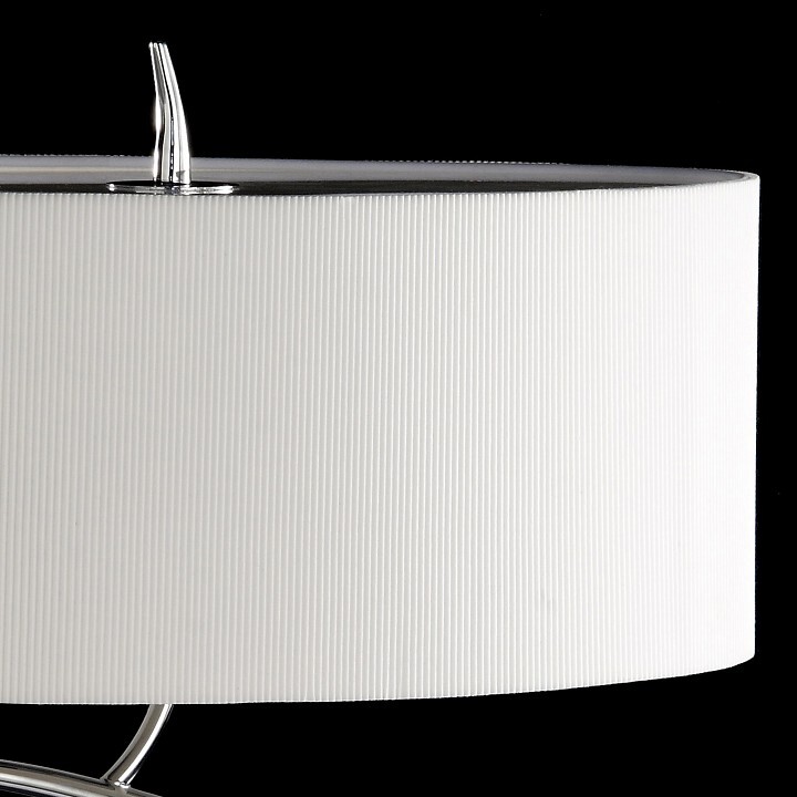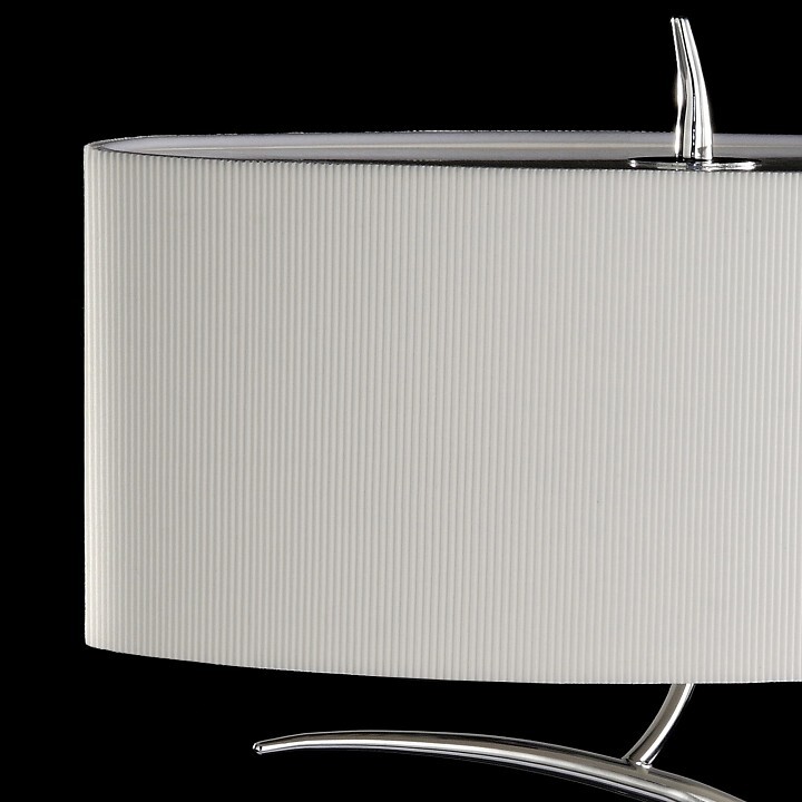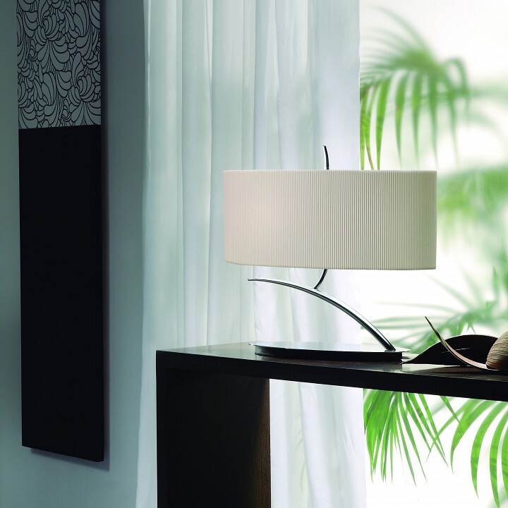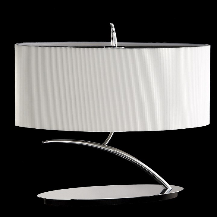 Испанская компания Mantra – певец плавных линий и округлых форм. Декоративная настольная лампа Eve 1138 напоминает эскиз проигрывателя для пластинок. Закрытый рельефный плафон из текстиля заглушает свет ламп, оставляя лишь мягкое свечение, подходящее для