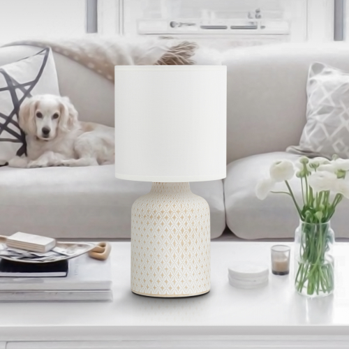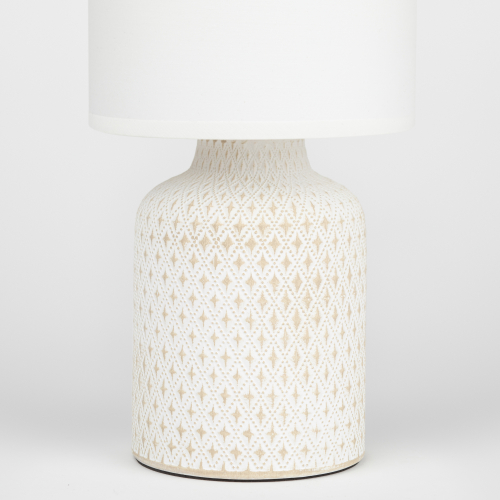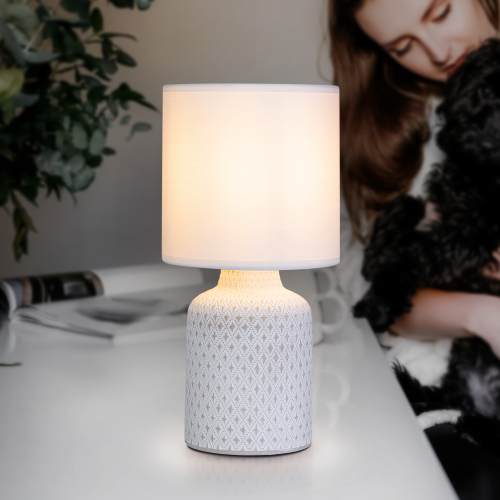 Настольная лампа от итальянского бренда Rivoli изготовлена из керамики и ткани в актуальном эко-стиле. Керамическое основание имеет геометричные узоры, в которых угадываются восточные мотивы. Базовый цвет с легкостью впишет этот дизайнерский настольный светильник в любой интерьер. Настольные лампы хороши для стилей классика, винтаж, восток, модерн, ретро. Важное преимущество, отличающее данные лампы настольные - натуральные материалы.