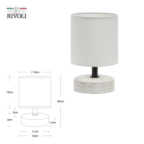 Абажур ночника на стол Rivoli изготовлен из плотной прочной ткани нежного бежевого цвета. Текстиль смягчает световые блики, делая этот ночник максимально уютным и практичным. Лампочка, подходящая в светильник прикроватный – Е14 40 Вт. Устойчивое основание обеспечивает безопасность эксплуатации лампы. Такую лампу можно купить, чтобы поставить на стол, на тумбочку у кровати, в спальню, гостиную, прихожую, кабинет, детскую, загородный дом.