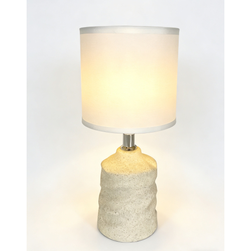 Основание с мягкой пластикой и природной текстурой напоминает форму, созданную вручную. Нейтральный песочный оттенок легко сочетается с деревом, льном и светлыми стенами. Текстильный абажур даёт мягкий рассеянный свет, идеальный для спальни и спокойных вечерних сценариев.