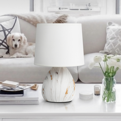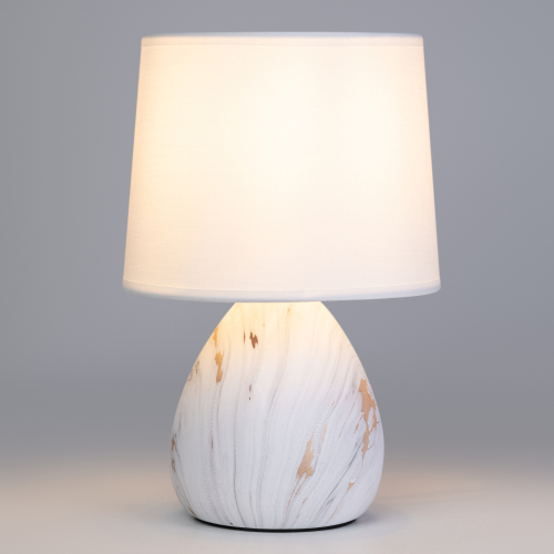 Настольная лампа Rivoli (арт. D7037-501) - красивое и практичное решение для вашего дома. Лампы настольные создают в помещении уют и комфортную атмосферу для отдыха. Данная лампа настольная от европейских дизайнеров имеет классический белый абажур из качественной ткани. Основание лампы изготовлено из керамики с расцветкой под мрамор в светлых тонах с яркими золотыми прожилками.