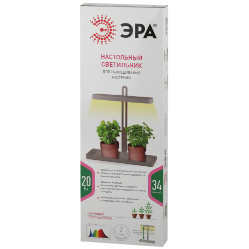 Светодиодный светильник для растений 20 Вт ЭРА FITO-20W-QLED-G. Это практичное приобретение пригодится тем, кто занимается выращиванием цветов и любит возиться с рассадой. Он гармонично впишется в кухню хозяйки или создаст уютную атмосферу в офисном пространстве. При этом фитосветильник не доставит неудобств глазам, так как его пульсации составляют 1%. Полный спектр лампы с преобладанием 660 нм активирует бурный рост для зеленых растений и способствует ускоренному развитию плодов. Удобный поддон не протекает, его можно мыть, а высота светильника комфортно регулируется под рост зелени. Основа лампы выполнена из негорючего пластика, к которому приятно прикасаться. Светодиоды экономнее обычных лампочек и имеют более долгий срок службы, а потому Вам не нужно будет запасаться новыми каждый год. Украсьте свой дом и создайте комфортные условия для любимых цветов вместе с фитолампой полного спектра ЭРА.