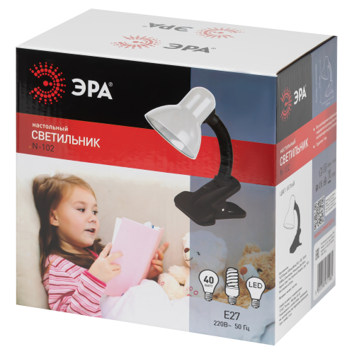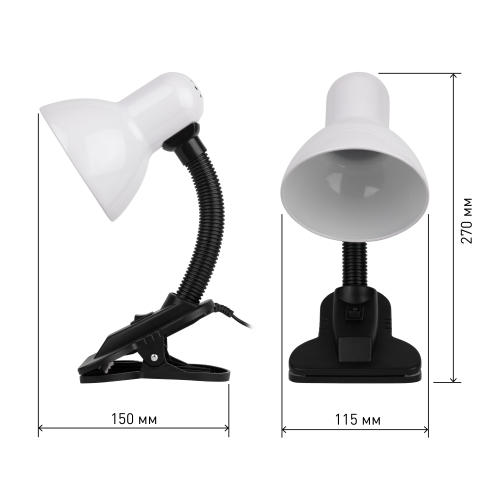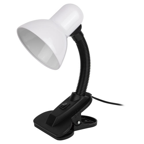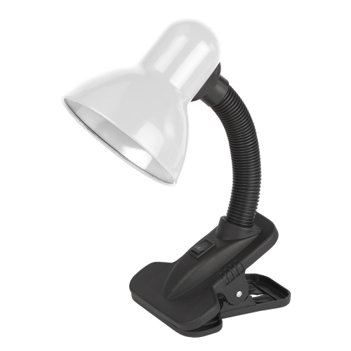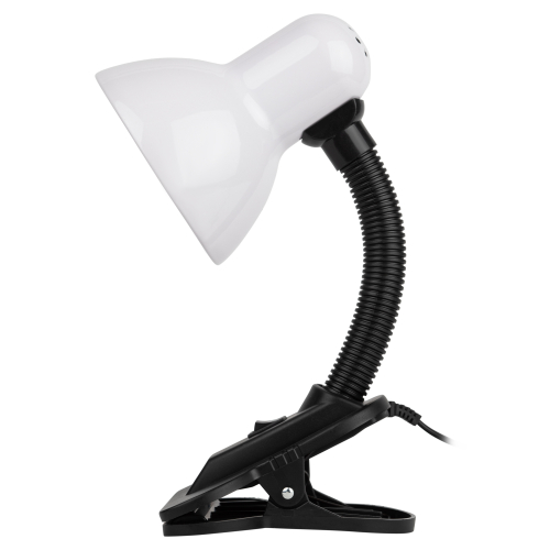Светильник может использоваться с лампой накаливания, компактной люминесцентной лампой (КЛЛ) или светодиодной (LED) лампой. Прочная прищепка. Металлический плафон. Наклон и поворот плафона в любом направлении.