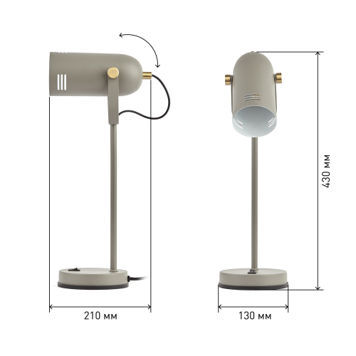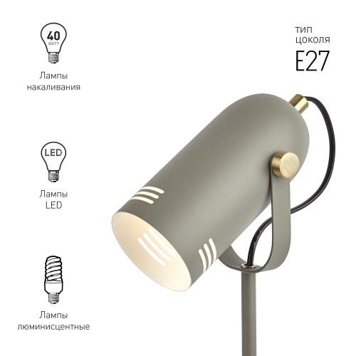 Красивый и удобный настольный светильник ЭРА N-117-Е27-40W-GY в стильном "ретро" корпусе. Может использоваться с разными источниками света - лампой накаливания, компактной люминесцентной лампой (КЛЛ) или светодиодной (LED) лампой. Прочный металлический корпус украшен гальванизированными элементами. Подвижный плафон позволяет регулировать направление света. В числе преимуществ для комфортного использования - устойчивость конструкции и оптимальные размеры для размещения на столе. Трендовый дизайн и актуальное сочетание цветов (серый корпус с матовыми золотистыми деталями) сделают этот светильник изюминкой интерьеров, особенно в стиле лофт или минимализм.