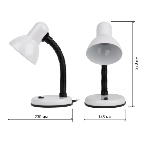 Светильник может использоваться с лампой накаливания, компактной люминесцентной лампой (КЛЛ) или светодиодной (LED) лампой. Устойчивое основание. Металлический плафон. Наклон и поворот плафона в любом направлении.