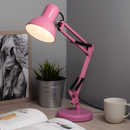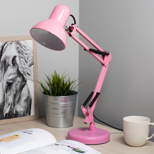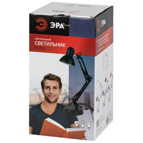 Настольный светильник ЭРА N-214-E27-40W-P классического дизайна может использоваться с разными источниками света - лампой накаливания, компактной люминесцентной лампой (КЛЛ) или светодиодной (LED) лампой. Выключатель на проводе. Устойчивое основание. Высота плафона регулируется двухсекционной сгибающейся стойкой, направление света - поворотом и наклоном плафона в любом направлении.