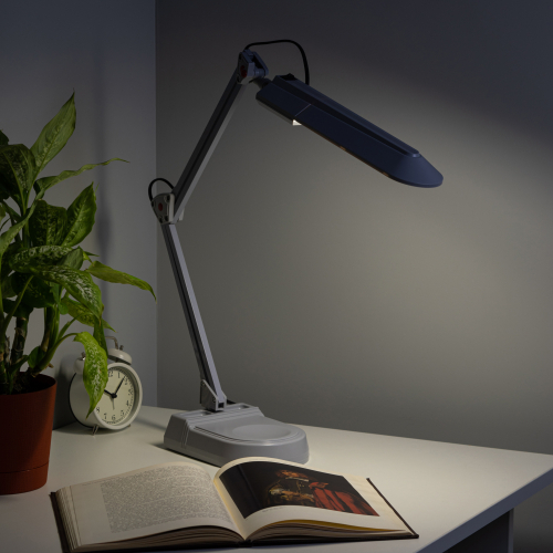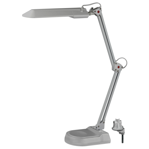Светильник предназначен для использования с энергосберегающей лампой, лампа входит к комплект. Два варианта крепления в комплекте: основание, струбцина. Высота плафона регулируется двухсекционной сгибающейся стойкой.