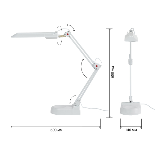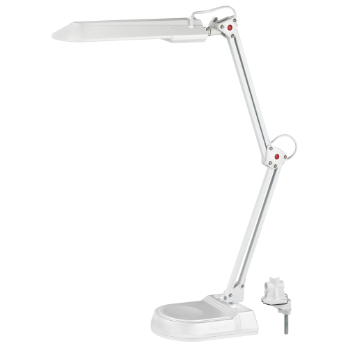 Светильник предназначен для использования с энергосберегающей лампой, лампа входит к комплект. Два варианта крепления в комплекте: основание, струбцина. Высота плафона регулируется двухсекционной сгибающейся стойкой.
