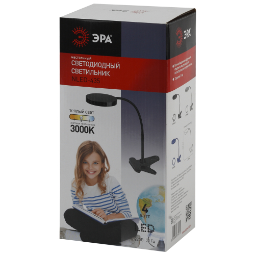 ЭРА NLED-435 - удобный настольный светильник с прищепкой и длинной гибкой стойкой. Высота - 45 см. Мощность 4W обеспечит оптимальную яркость и комфорт для глаз. Актуальный стильный оттенок корпуса. С помощью ЭРА NLED-435 оперативно создать рабочее место с качественным освещением можно где угодно!