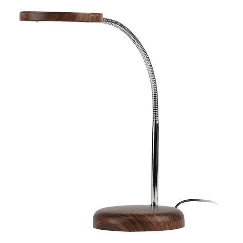 Настольный светильник со светодиодами (LED) в качестве источников света. Теплый свет, аналогичный свету лампы накаливания - цветовая температура 3000К. Выключатель на плафоне. Гибкая стойка.