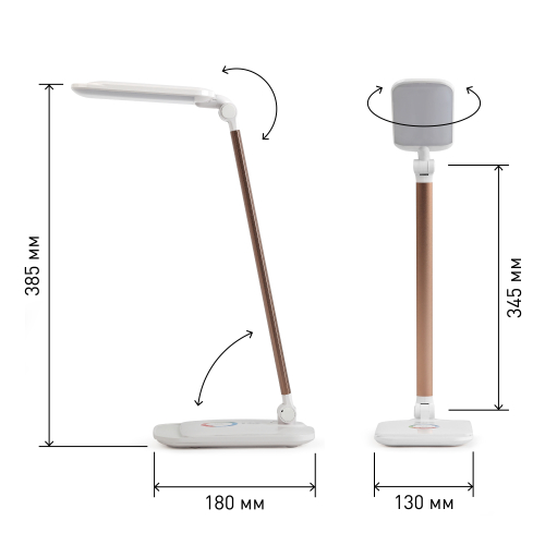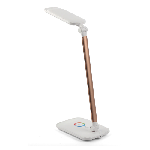 Светильник со светодиодами (LED) в качестве источников света. Выбор цветовой температуры - 3 цвета: 3000К, 4500К, 6000К. Сенсорное переключение. Плавный диммер для регулировки яркости. USB разъем для зарядки устройств. LED ночник на основании с независимым выключателем и выбором режима работы: режим цветовых переходов - плавно меняет цвета; режим выбора любого цвета - светит в том оттенке, который выбран на цветовом круге (можно выбрать любой). Складная конструкция. Поворот плафона относительно стойки для удобного направления света.