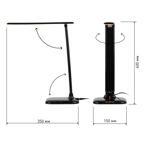 Настольный светильник ЭРА NLED-462-10W-BK со светодиодами (LED) в качестве источников света. Оснащен сенсорным управлением, есть регулировка яркости освещения - 3 уровня. Складная конструкция для оптимального хранения.
