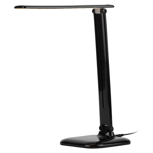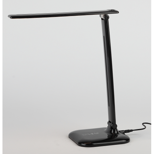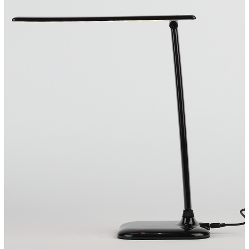 Настольный светильник со светодиодами (LED) в качестве источников света. Теплый свет, аналогичный свету лампы накаливания - цветовая температура 3000К. Сенсорный переключатель на основании. Трехступенчатый диммер для регулировки яркости. Складная конструкция.