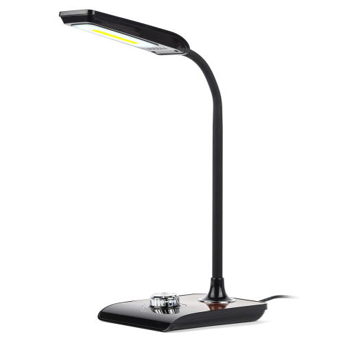 Настольный светильник со светодиодами (LED) в качестве источников света. Выбор цветовой температуры - 3 цвета: 3000К, 4500К, 6000К. Сенсорный переключатель на основании. Плавный диммер для регулировки яркости. Гибкая стойка.