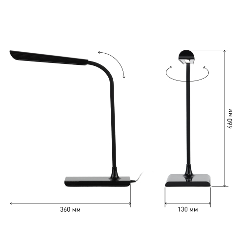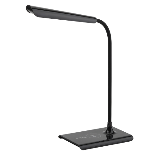 Светильник со светодиодами (LED) в качестве источников света. Цветовая температура 4000К. Сенсорное переключение. Плавный диммер для регулировки яркости. Функция беспроводной зарядки. В комплекте внешние модули беспроводной зарядки: Lightning (для iPhone 5 и выше) и Micro-USB (для Android). USB разъем для зарядки устройств. Высота плафона регулируется гибкой стойкой, направление света регулируется поворотом плафона в любом направлении.