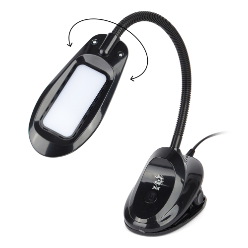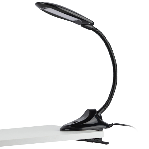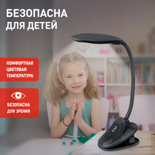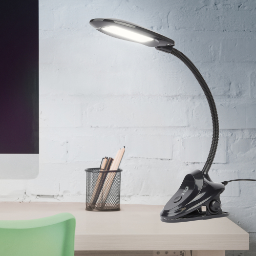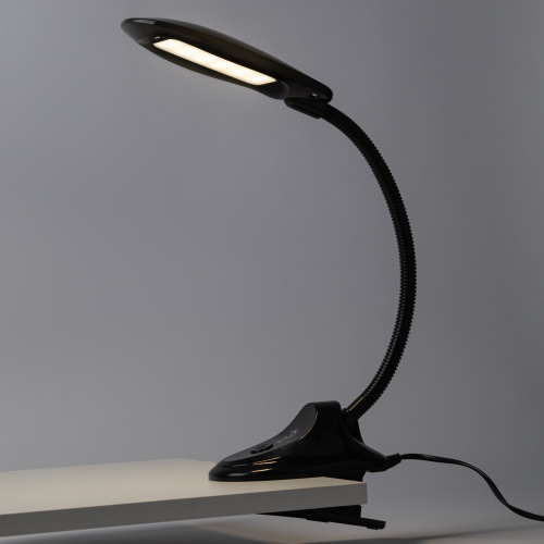 Настольный светильник со светодиодами (LED) в качестве источников света. На прищепке. Нейтральный белый свет - цветовая температура 4000К. Выключатель на прищепке. Гибкая стойка.