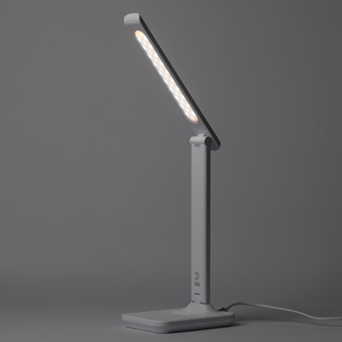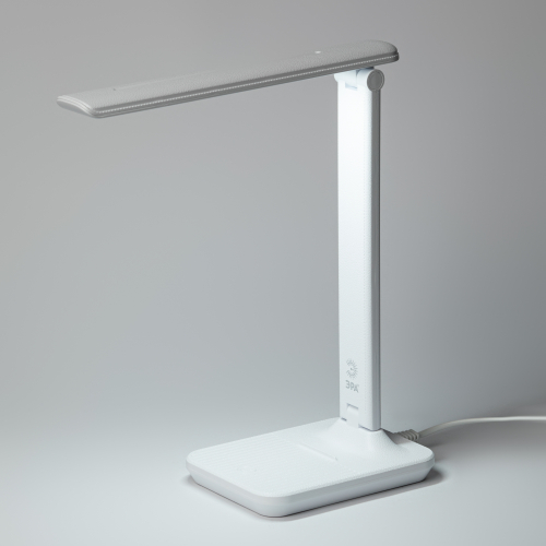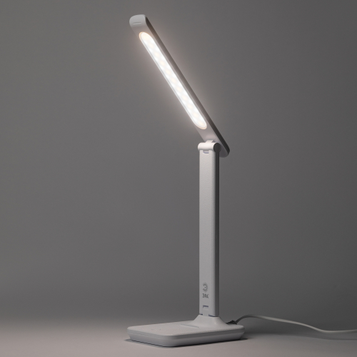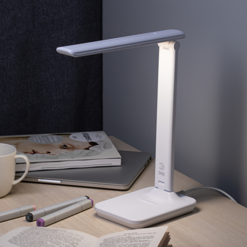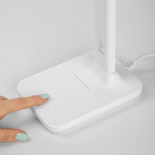 Настольный светильник ЭРА NLED-500-10W-W со светодиодами (LED) в качестве источников света в дизайне "под кожу". Удобная складная модель с сенсорным управлением, возможностью выбора цветовой температуры и плавным диммером для регулировки яркости.