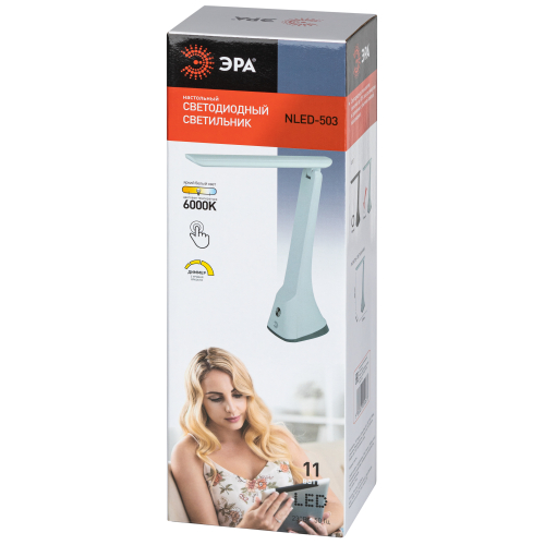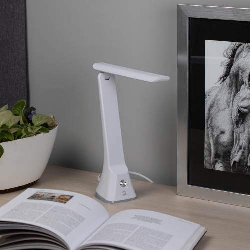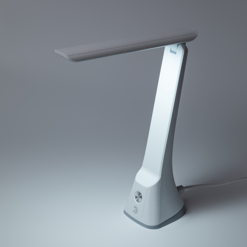 Настольный светильник со светодиодами (LED) в качестве источников света в дизайне "под кожу". Удобная складная модель с сенсорным уравлением и трехступенчатым диммером для регулировки яркости. Яркий белый свет - цветовая температура 6000К.